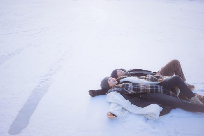 兴时还携手躺在雪地,冬日的阳光洒在两人身上,画面温暖甜蜜。
