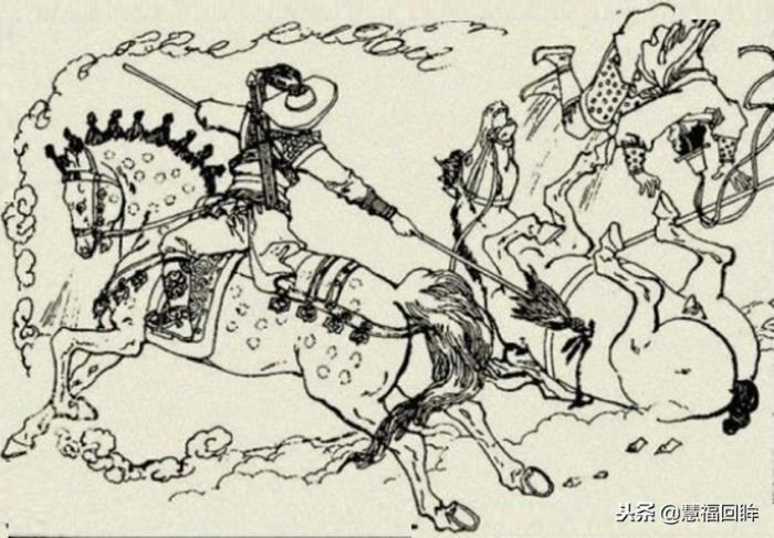高丽大将左雄上场时,伍云召已经枪挑了突厥老英王大将铁木金。左雄手执板斧,坐下骑着一匹宝马,名叫“没尾驹”。这匹马看着没尾巴,其实尾巴在肚子里藏着呢,相当厉害。左雄抡斧与伍云召交战,战了几个回合,左雄不敌,回马便走。