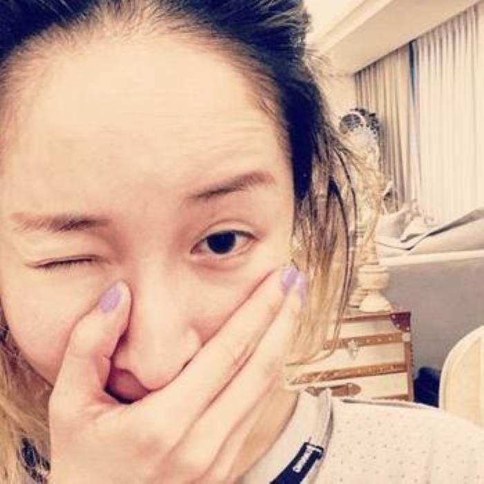 从图片中可以看出萧亚轩是素颜现身,头发稍微有些凌乱 脸上的皱纹也很明显,她用手挡住了脸上的疤痕。手上抹着紫色的指甲油,一只眼睛睁着一只眼睛闭着,有些憔悴,不过她整体的状态还是很好的。萧亚轩还配文称“有种想你的泪”,这样悲伤的配文也引发了网友的猜测。