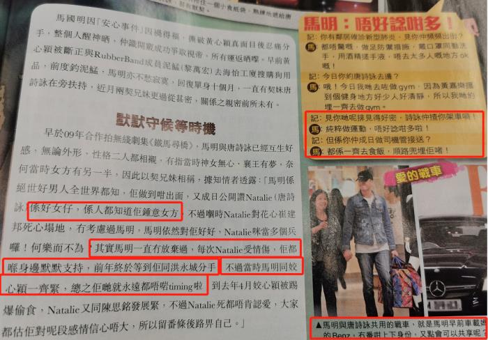 马国明在采访中则表示和唐诗咏约上一起做运动,是因为选择的健身房人少清净,还表示整天做唐诗咏的专属司机,也是因为顺路原因,还强调记者别想太多。但其实马国明住的地方和唐诗咏住的公寓位置相距甚远,连日的车出车入,绝对不是顺路,感觉马国明在欲盖弥彰了!