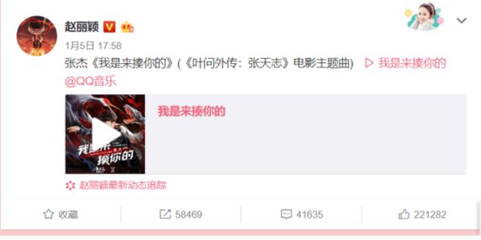 紧接着赵丽颖就在微博上发了张杰《我是来揍你的》歌,貌似是在隔空打嘴仗。