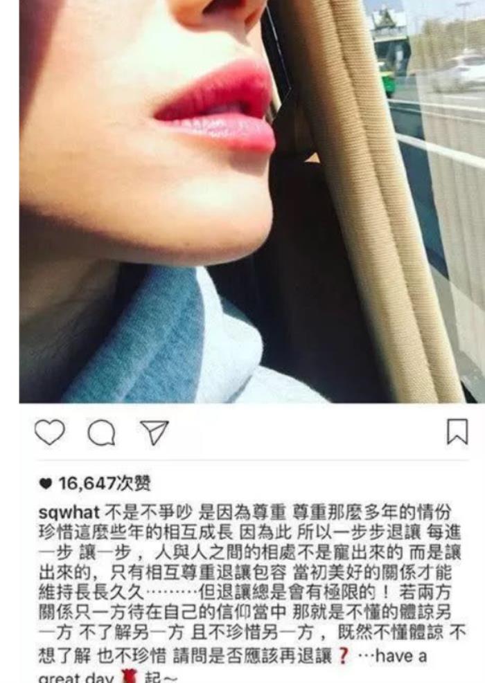 其实两人婚后的生活一直比较低调,因此外界曾有一段时间传出过关于两人结婚一年后离婚的传闻。导火索就是舒淇曾在2017年之时在社交平台上曾发布的一大段言论,她声称“忍耐总是有极限的”,并且还反问道:如果一方不懂得体谅另一方,那么是否还应该继续做出退让。