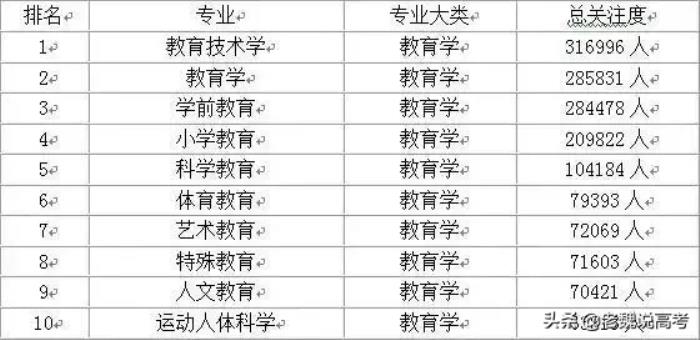 八、教育学最受欢迎排行前10专业