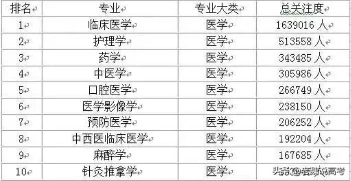五、医学最受欢迎排行前10专业