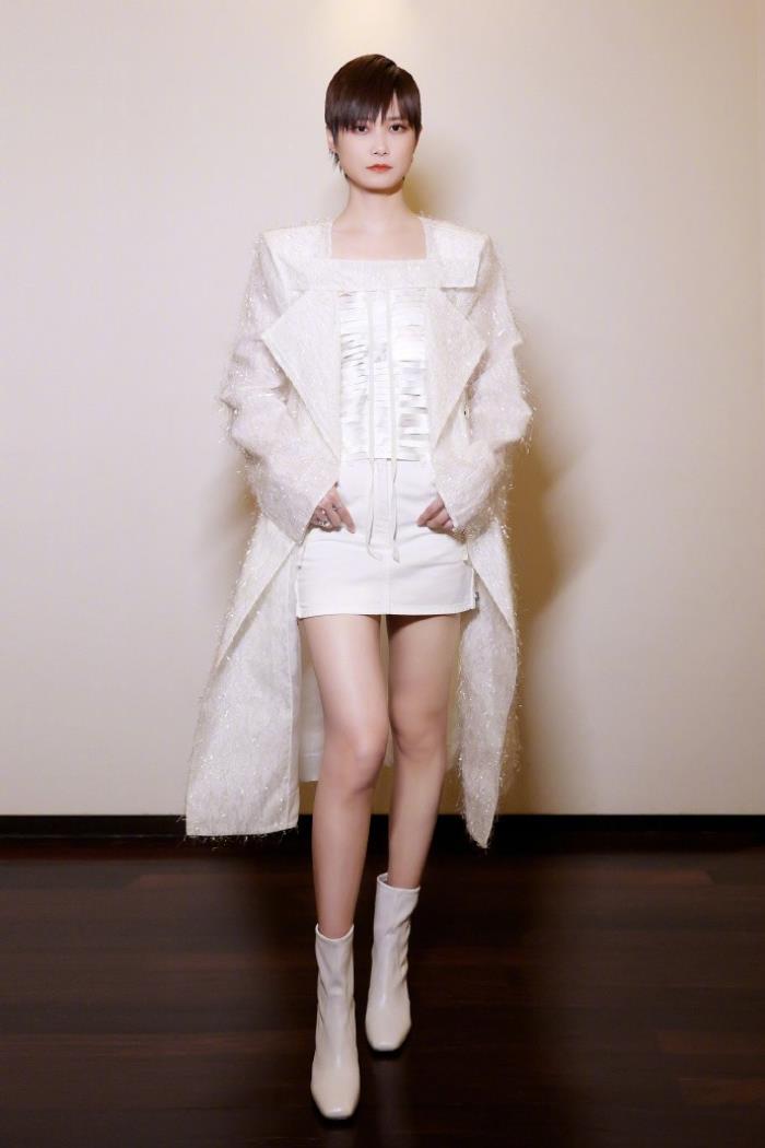 从照片中可以看到李宇春的穿搭整体是偏白的,虽然她还是标志性的利落短发,但是穿着的白色短裙秀出白皙长腿,她的腿除了长和白之外,还很纤细,能够看到明显的腿缝,显示出一丝丝性感。面对镜头的李宇春,一如既往得自信与大方。