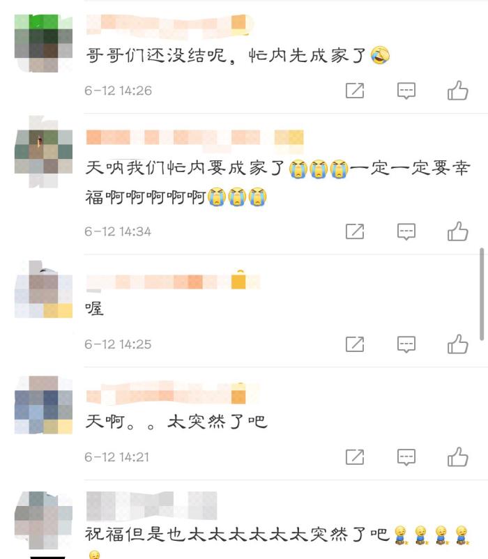 恋情曝光后让无数女网友表示自己的墙头到了,但还是要送上祝福。在沈昌珉将要结婚的消息曝出之后也让很多网友表示震惊称这也太快了吧。作为东方神起组合里最小的成员,哥哥们还没结婚呢,忙内先成家了,一定一定要幸福。