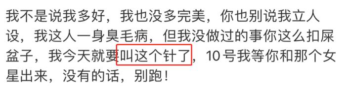 面对一次又一次挑衅般的爆料,李佳航生气到了极点,凌晨1点左右,不仅直接截图爆料内容,还写出《刑法》诽谤罪的处罚条例,由此表明爆料人造谣,否认自己立人设,并正面喊话:“我今天就要较这个真了,10号我等着你和那个女星出来,没有的话,别跑!”