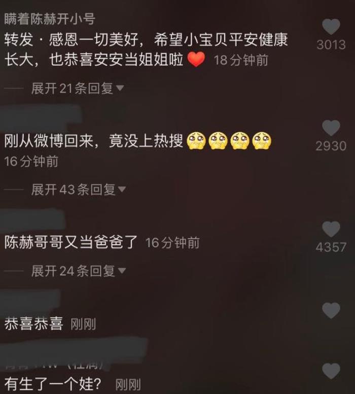 大家都知道陈赫和张子萱结婚后有了一个可爱的女儿安安,而就在刚刚,陈赫工作室在微博发文,“感谢所有的美好,一切都是那么让人感动”,以温暖有爱的画面公布了二胎宝宝出生的喜讯。画面中,陈赫与妻子张子萱、女儿安安一同用双手小心翼翼地包裹住二胎宝宝的小拳头,幸福满溢。