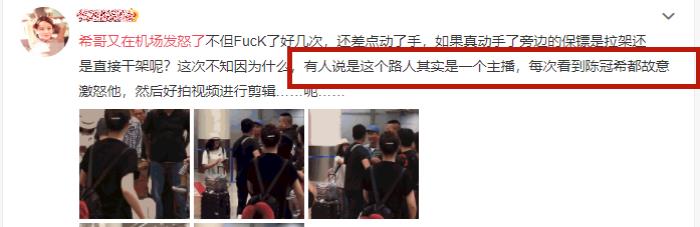 这次也是同样的原因,围观网友爆料这次偷拍陈冠希的人也是一个主播,他故意用拍视频的方式刺激陈冠希,回去之后再将视频剪辑出来,这样就会获得更多的点击量。