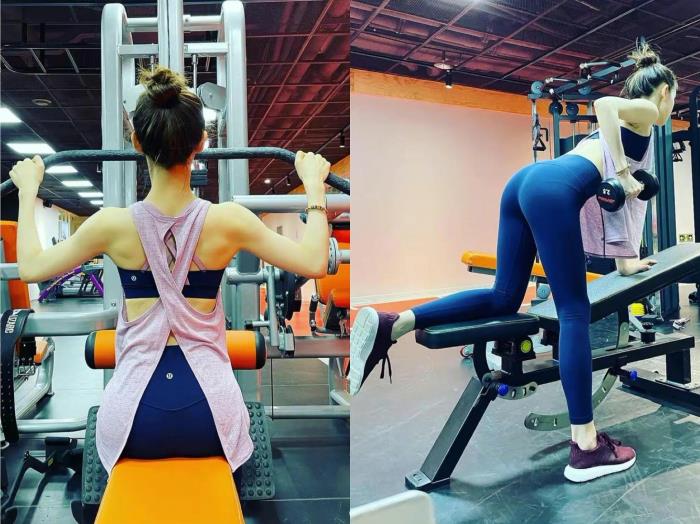 照片中的她,秀出大长腿和背肌,曲线相当优越。