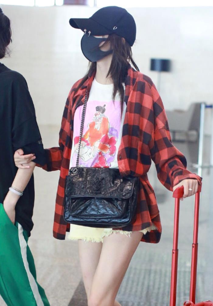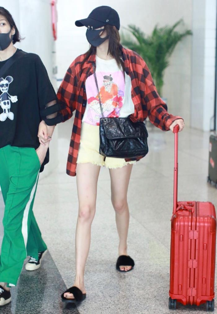 近日,关晓彤现身机场。当天她格子衬衫配短裤,戴口罩帽子全副武装只露长腿,相当休闲,手挽着助理自推行李箱。