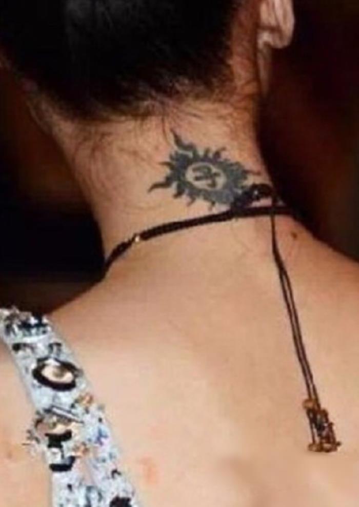 这个纹身就是当年很火的纹身,黄圣依在脖子后面纹了老公杨子的名字,再难看也不洗难怪全程被打码,说实话这个纹身真的有被土到,怎么会纹一个这么俗气的纹身呢,黄圣依也是一个大美女,星女郎出身啊,但看到她的纹身有点怀疑她的审美水平了