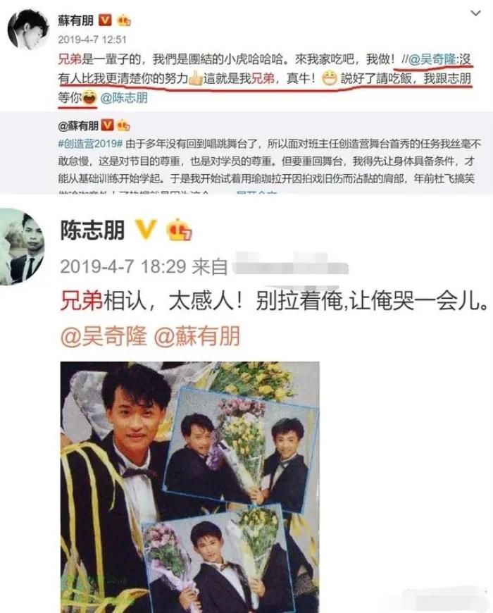 其实早在苏有朋参加创造营的时候就曾喊话吴奇隆和陈志朋进行约饭,两人也在微博上回应此事,兄弟情义让不少人动容。在小虎队解散以后,三人有很长的时间没有合体,这让不少媒体猜测三人的关系,其实并没有表面上看起来那么好。