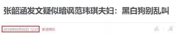 3月2日,张韶涵就发了一条意味不明的微博,当中的一句“黑白狗别乱博关注 嘘~”难免引来猜测。