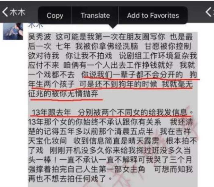 2018年,女演员陈昱雯在朋友圈爆料称自己与吴秀波有一段长达7年的“地下恋情”。