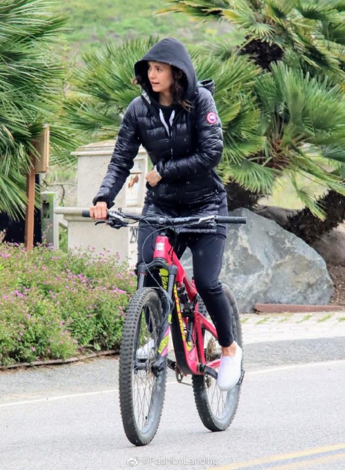 当地时间3月22日,Nina Dobrev妮娜·杜波夫和新交往的男朋友Shaun White抱着狗子现身洛杉矶街头骑单车。