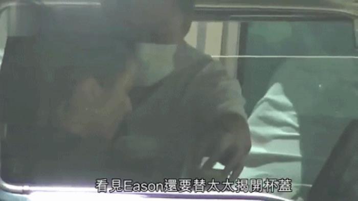 完事儿后女儿和妻子先上车,坐在车内的小俩口举动亲密,陈奕迅不是给对方揭杯盖,就是拿纸给对方擦鼻子,完全像对待小Baby一般对爱妻,这狗粮谁吃谁撑。