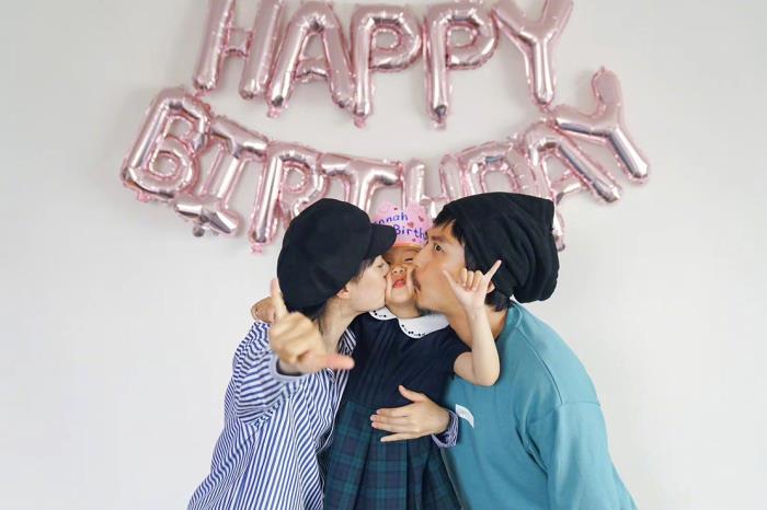 实际上除了等等,小花妹妹也跟哥哥一样,每次都会享受到这个待遇。今年她过6岁生日时,也被“狠狠地”亲了脸颊,夹在爸妈中间的她,看起来也是超级软萌。