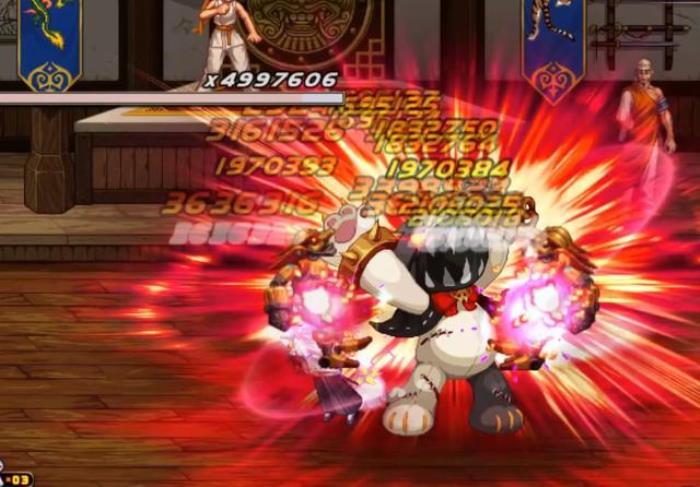 35级疯疯熊追击,脱手型输出技能,疯疯熊跳到空中坠落造成冲击波伤害。