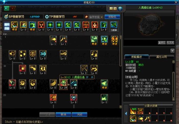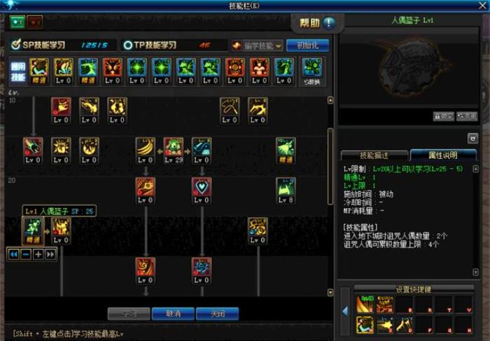 25级核心被动,1级精通,学习后可以使用人偶诅咒系技能,并且这是一个特别的被动,可以开启和关闭,关闭后使用人偶技能时不会对怪物造成伤害。学习后入场带2个人偶,学习二觉被动是3个,储存上限是4个人偶。