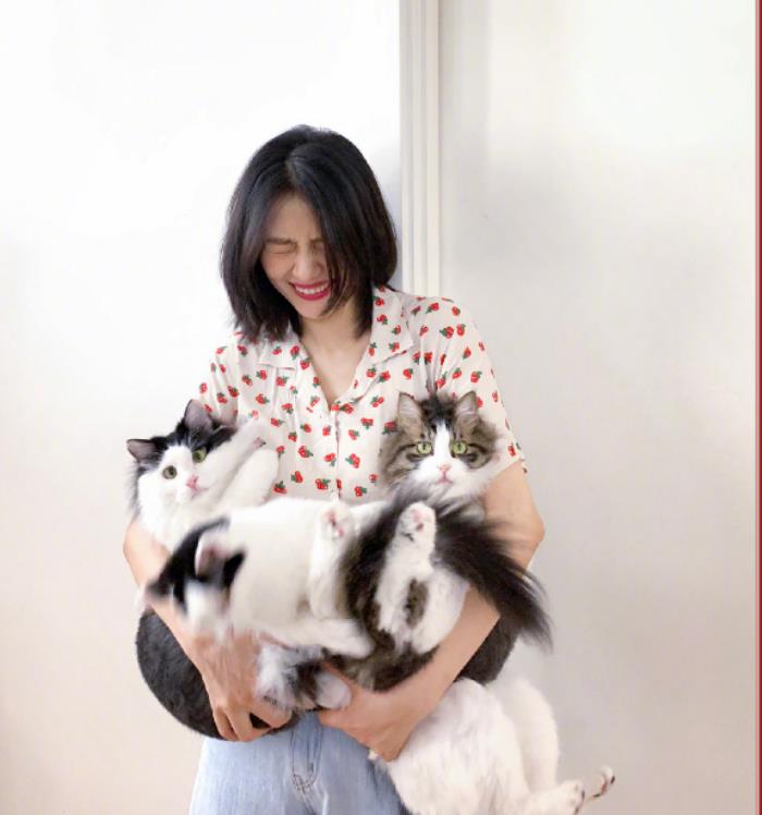 而且高圆圆并没有强行去P图,比如她在照片中全身出镜,就会用东西挡住腰部,手抱三只猫咪、或者双手抱腰巧妙遮挡。
