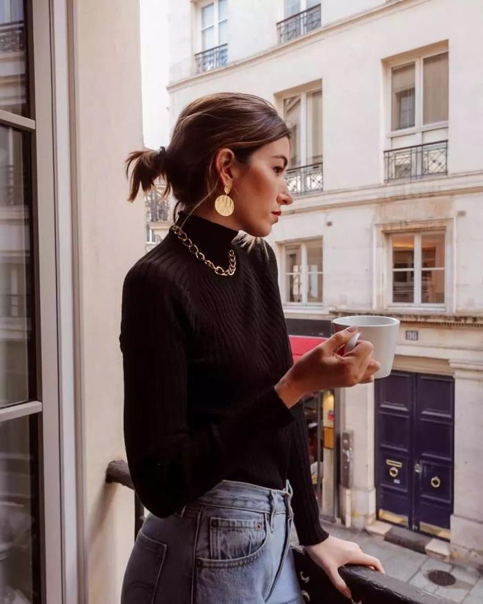 要想穿搭省时不费力,衣橱里必定要有好穿百搭不挑人的基础款,既能降低搭配上的违和感,又能起到衬托过渡的作用,保持造型的整洁感,而日常中常见的基础款单品并不少,像T恤、衬衫、高领打底衫、西装、牛仔裤等都属于基础款,基础款之间的搭配是最不易翻车且耐看的,像这身黑西装+半高领打底衫+牛仔裤就很清爽干练,休闲通勤都不显突兀另类。