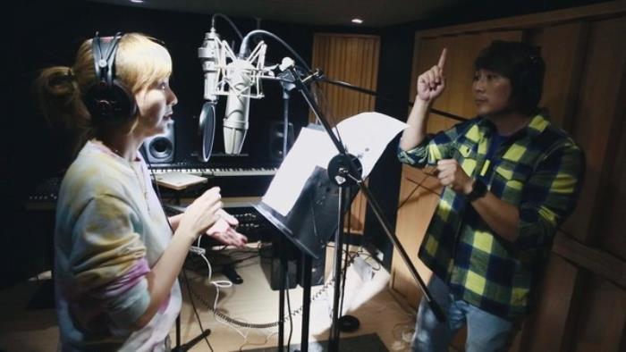 夫妻合唱新曲,王仁甫充当魔鬼教练。(图/经纪人提供)