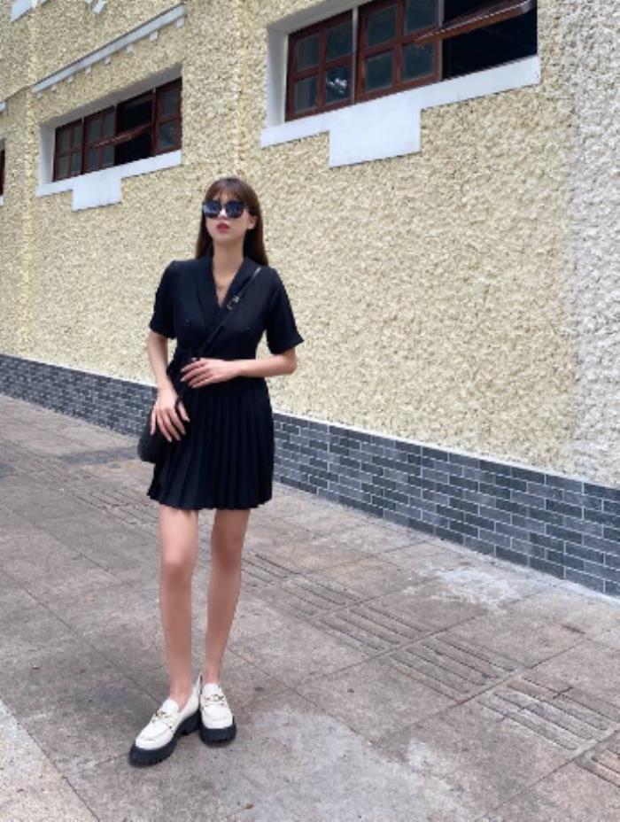 黑色对于大众来说是非常显瘦的款式,在夏天穿上一款黑色的百褶裙和白色的松糕鞋,非常的吸晴,大气,鞋子的高度正好可以达到视觉上的显瘦效果,腿部曲线也变得很和谐!