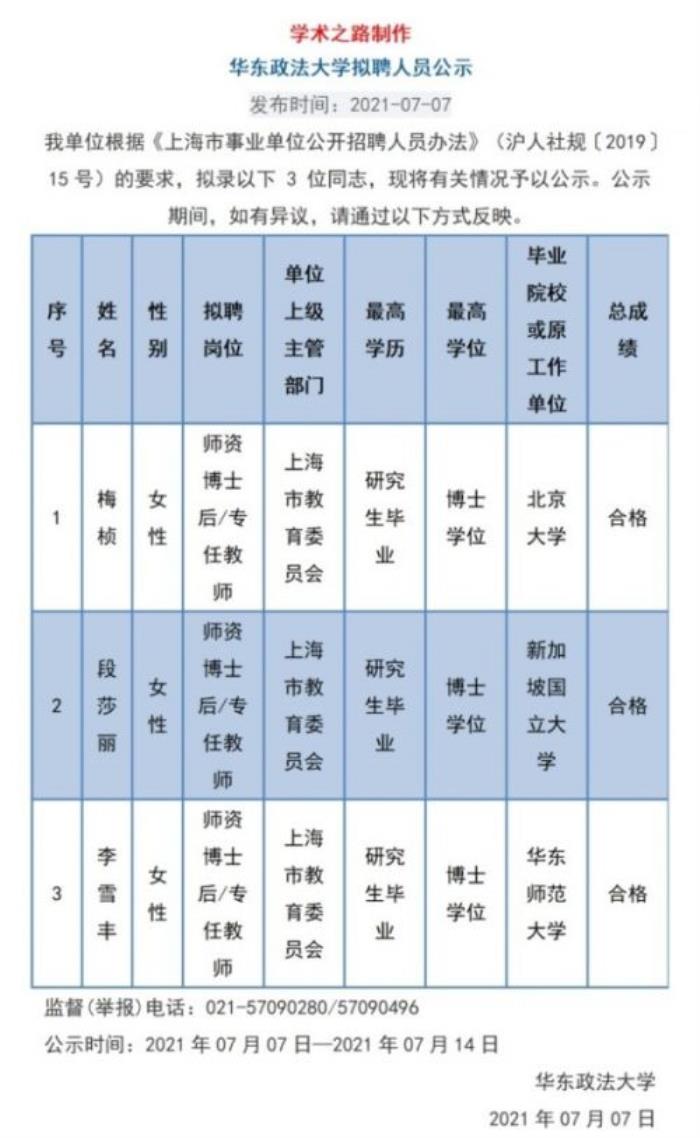 近日,曾因参与职场综艺《令人心动的offer》第一季的梅桢出现在华东政法大学专任教师的拟聘人员公示名单上,此番公示引发该校学生不满。