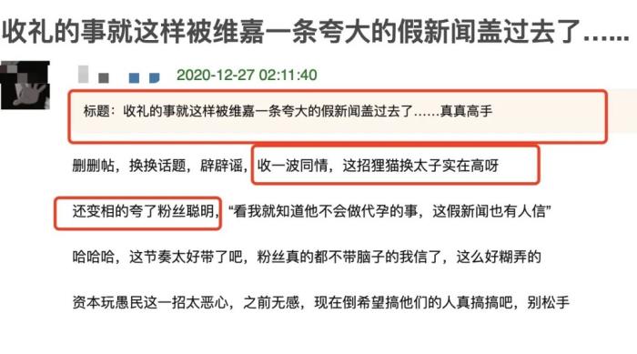 随着李维嘉昨晚的辟谣,很多网友都觉得事有蹊跷。有人开贴质疑:“收礼物的事就这样被一条夸大的假新闻盖过去了,这招狸猫换太子实在高,还变相夸了粉丝聪明,真是高手。”
