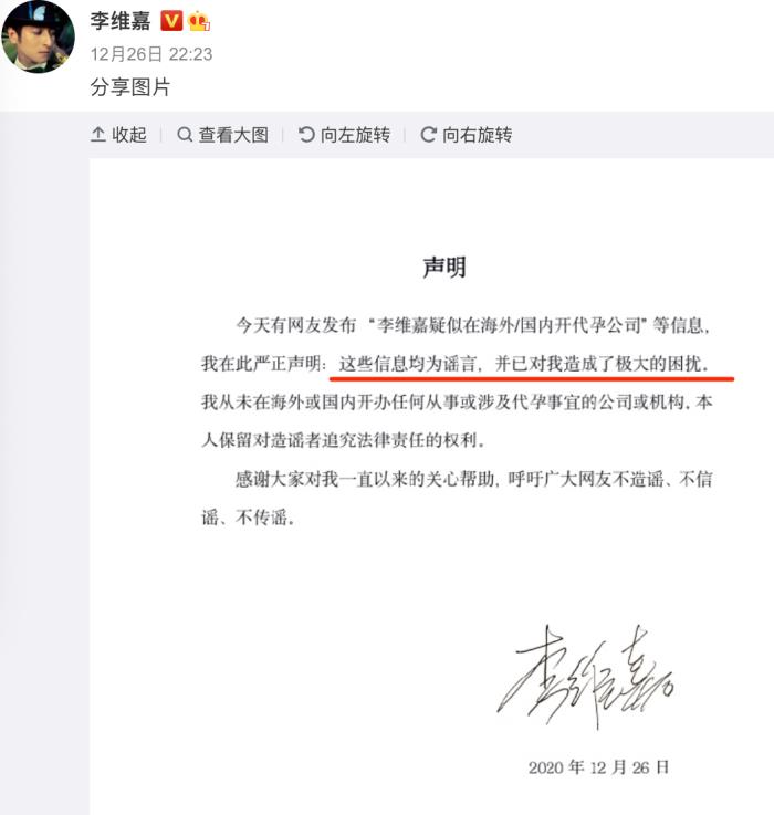 乍一看,很多网友都觉得李维嘉明显是被冤枉了。但昨天就已有理智的网友吐槽:“代孕本就不合法,不可能有这种公司,还辟谣,逻辑不清!”