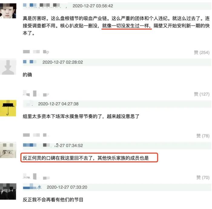 诸多巧合碰到一起,很多网友也表示:“就这么过去了,就像一切没有发生过一样,越来越没意思了。”还有人说:“反正快乐家族成员的口碑是回不去了。”