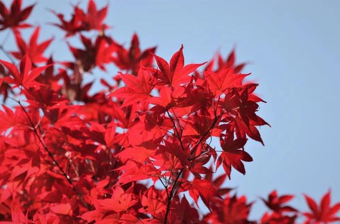 在济南也有个红叶谷,漫山遍野的红叶开放,仿佛一片火的海洋,只叫人的内心攒动。
