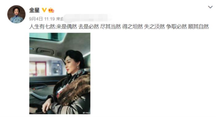 如今金星最大的孩子也已经20岁了,但她把孩子们保护得很好,几乎没有被曝光过,她在9月4日的时候谈自己的人生感悟,称:"人生有七然,来是偶然,去是必然,尽其当然,得之坦然,失之淡然,争取必然,顺其自然",或许就是这份豁达,让她能够兼顾事业和家庭。