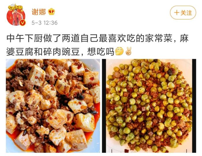 5月3日,主持人谢娜在社交平台罕秀厨艺,挺着孕肚做了两道家常菜。菜里全是辣椒,看上去红彤彤的,看来娜姐怀孕也没有忌口。