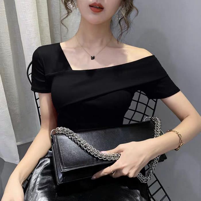 既然一字肩的性感我们不能穿,那我们就选择斜肩。斜肩也是很性感,如果一字肩是一种张扬的性感,那么斜肩就是收敛的性感。