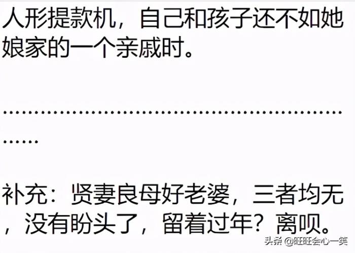 那可说不准,离婚的理由千奇百样:性格不合、生活习惯不相融合、颜值身材的变化、有钱了选择更多了、困难了要跑路了、妖艳贱货上杆子来了、自己也想浪了,等等。原因太多了,一般男人咋说呢?