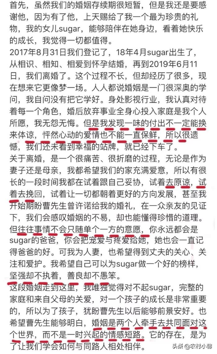 舆论纷纷指责男方太渣,更有网友一语戳心:仿佛是段不含温情的功能式婚姻。女方孕期,曹云金被拍到和女子私下约会,共处一室,随后澄清一句“被人黑了”,“深夜说相声”却成为一个被调侃的梗;曹云金的朋友圈家长里短,有女儿朋友,可足足半年,没有出现过妻子一丝消息。而最为人诟病,是曹云金上节目,也怨怼两人间,一花大钱就是自己的。唐菀实在忍不住道:因为你是爸爸!曹云金离婚后,其经纪人对女方有意无意的一句指责:结婚以来,女方从不赚钱。这句话更瞬间激怒大众:感情你们结婚,从头至尾不过怀孕生子一整年,这期间指责对方收入少,按照这意思,你要一个孕妇和产后女性出去拍戏挣钱?杀人不过头点地,离婚何必再诛心?旁人纵不知中个滋味,也难免知晓凉薄!