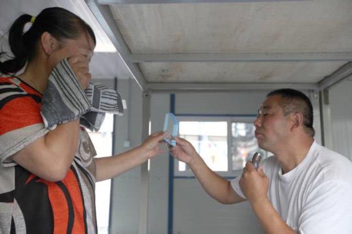 她打了车,然后去了丈夫所在的工地,询问得知了丈夫的宿舍,走到宿舍区后,闻到一股浓重的中药味,走进丈夫说所在的宿舍后,看到丈夫躺在床上,丈夫也看到了她,他正想起身,却听见丈夫一声尖叫然后重新地摔在床上,她赶忙跑了过去,询问丈夫是怎么回事,在她的追问下,丈夫说出了实情,原来他在干活的时候不小心摔断了腿,然后工头不给报销医药费,没办法只是在医院住了几天,就搬回了宿舍,在宿舍用中药治。丈夫说完之后,她再也忍不住哭了起来,然后拿起手机拨打了报警电话。