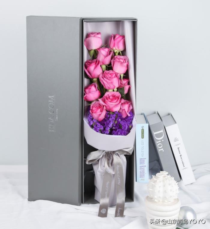 材 料:高档礼盒装鲜花:紫色玫瑰11枝、深紫色勿忘我0.3扎