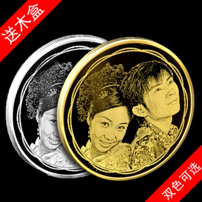 提供照片就可以定制一枚纪念币,纯银材质电镀真金,送实木礼盒,可以永久保存的纪念礼物。