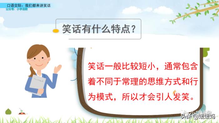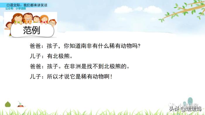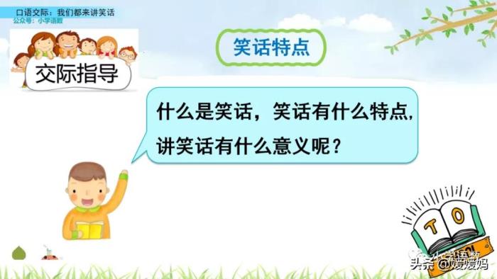 笑话能给我们带来快乐,愉悦我们的生活,这次口语交际要求我们学会讲笑话,组织一次笑话大会。