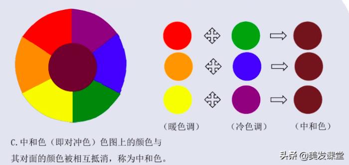 比如说黄是单色,紫色是二次色,紫是由蓝跟红组合的,拿紫跟黄对冲实际上就是拿蓝黄红混合的。能够完全对冲的前提是他们的色素粒子刚好对等相等