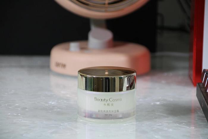 最后一个步骤就是用水肌美富勒烯水光霜,它的作用则是加倍保湿和滋润皮肤的,用上它可以把营养成分深入到肌肤深层,让女性的皮肤的始终保持青春、活力的状态,从官方了解到水肌美富勒烯水光霜的成分“富勒烯”是获得了诺贝尔奖的,富勒烯是一种抗氧化物质,长期使用让皮肤光泽细腻,在使用水肌美富勒烯水光霜的时候你会发现它的霜体顺滑,涂抹在皮肤上吸收的也很快,丝毫没有那种粘腻感。