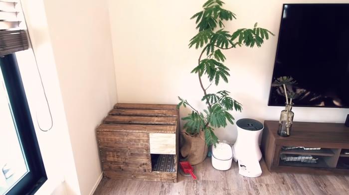 房间内部物品收纳整洁有序,细节处还摆放着绿植,充满生活质感。