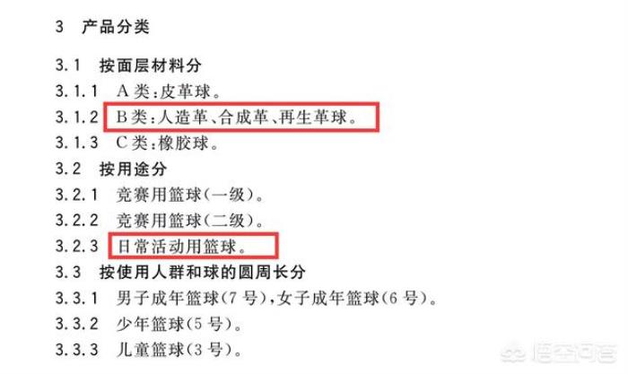 篮球根据用途可分为三类,1.一级竞赛用篮球,2.二级竞赛用篮球,3.日常活动用篮球,我们通常所购买和使用的都是第3类日常活动用球。根据国家标准,篮球按面层材料(也就是我们看到和接触到的表皮)可分为3大类,1.皮革求,也就是通常所说的真皮或者牛皮材质,2.人造革、合成革、再生革,也就是通常我们所说的PU,吸湿PU,PVC,翻毛,超纤等。3.橡胶球,这类球通常是儿童玩具球居多。