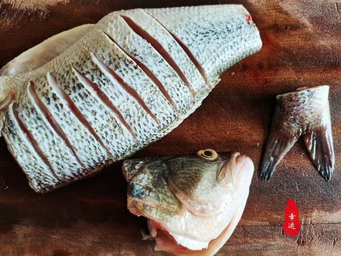 活鲈鱼在超市售货员帮忙宰杀的,但回到家中,仍然要仔细收拾一下肚子里面的黑膜及杂质,剪去鱼鳍,清洗干净。