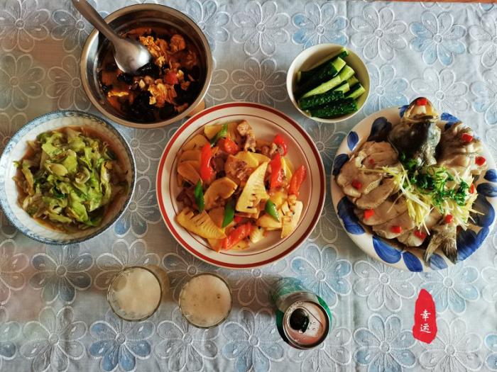餐桌上还有两个炒菜,一个是蚝油生菜,另一个就是五花肉炒冬笋。其实老两口只是找个借口喝点吃点罢了,一年一年岁数都是往上涨,真的是不想过生日。我们现在追求的是,平平安安过日子,开开心心享受生活。大家说说我们这样想对不对呢?!