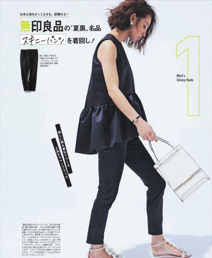 比如这款黑色无袖上衣,它的设计较为宽松,而且会呈现出从上至下越来越宽的设计,会导致下摆有飘逸的感觉。但考虑到要对身材有修饰或是美化的作用,裤装最好不要与上衣一样保持太宽阔的设计。