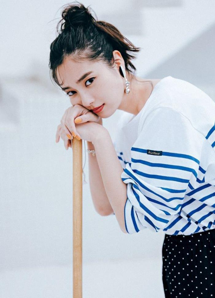 不得不说,条纹T恤若是运用常见的黑白两色,容易产生太单调的感觉,换成蓝白配,风格自然清新了一倍都不止。